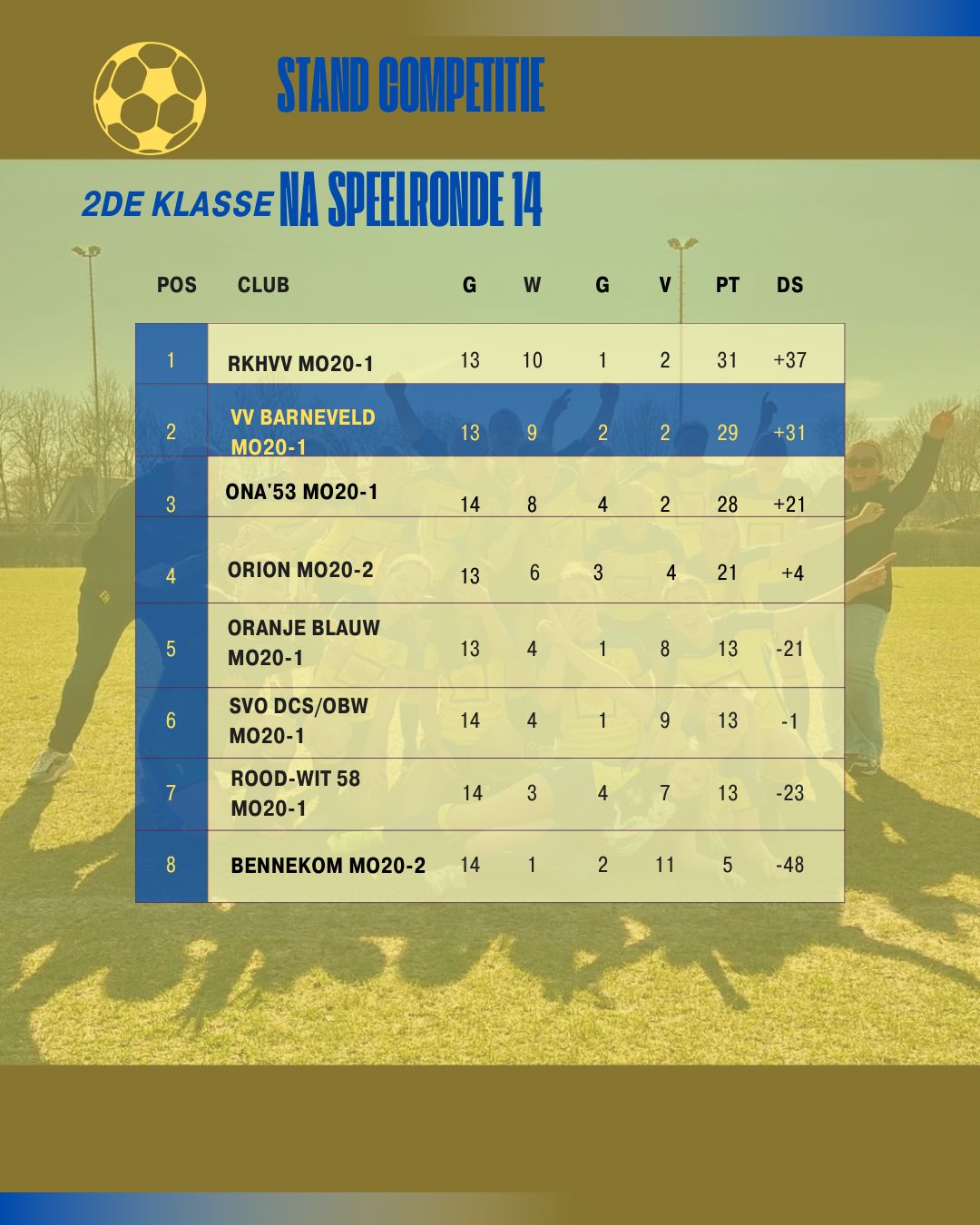 Wij begonnen er met z'n allen in te geloven dat de 1ste plaats aan het einde van de rit mogelijk zou zijn, maar dan moest alles kloppen en moest elke week alles gegeven worden. 4 overwinningen, 1 gelijkspel op karakter na een 1-3 nederlaag en een grote nederlaag tegen een concurrent betekende dat de beslissing in het laatste speelweekend zou vallen.