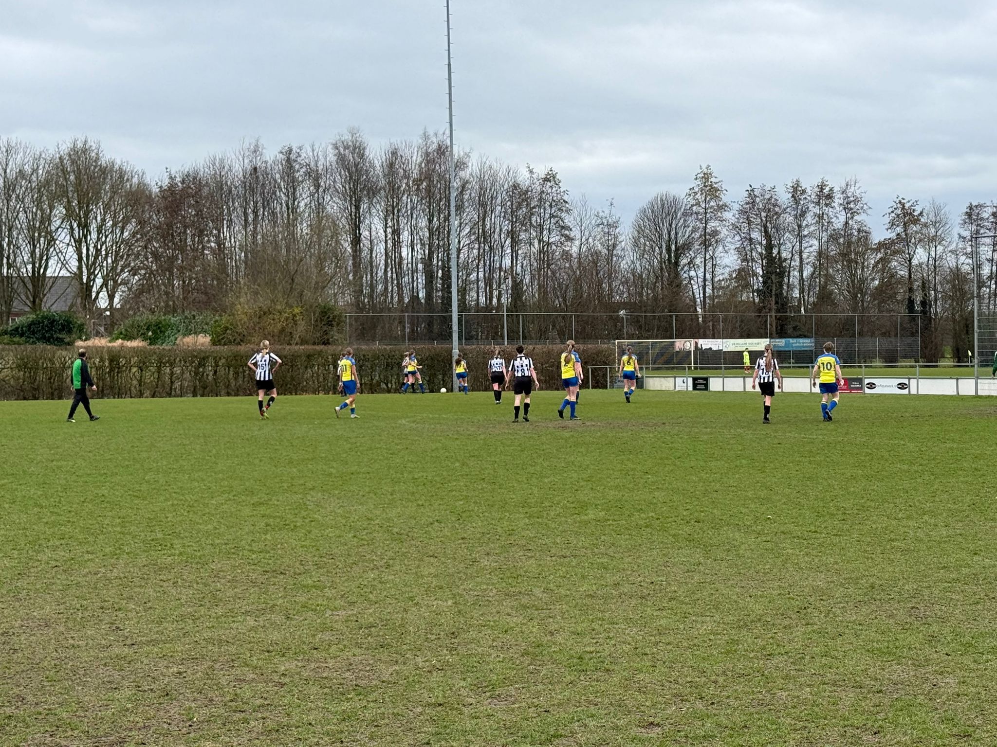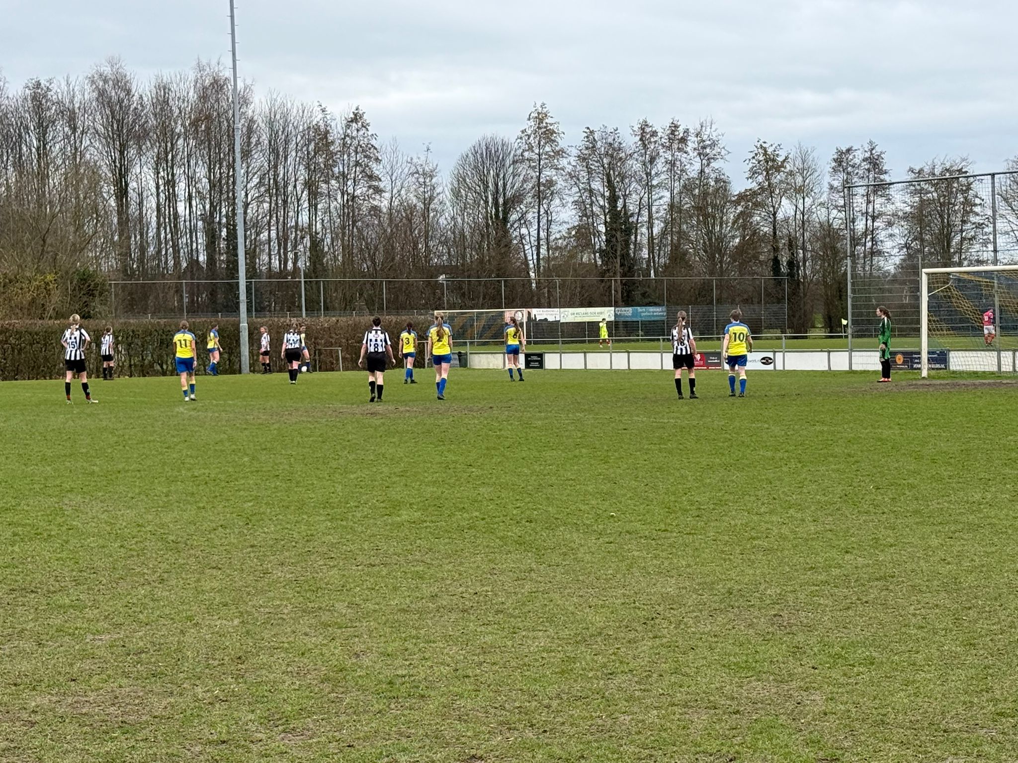 Danique waagde nog een heerlijke poging van een meter of twintig. De bal leek onderweg naar de hoek, maar de keepster tikte ‘m nét naast. Soms zit alles mee, vandaag nét niet.