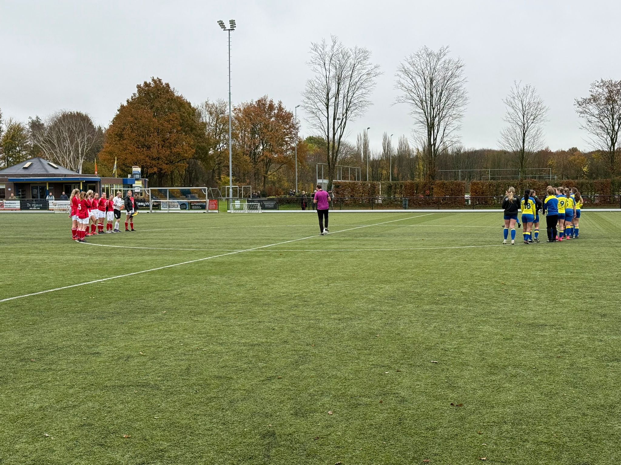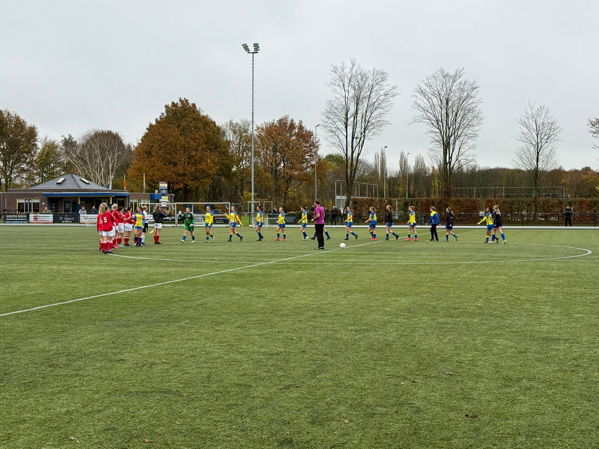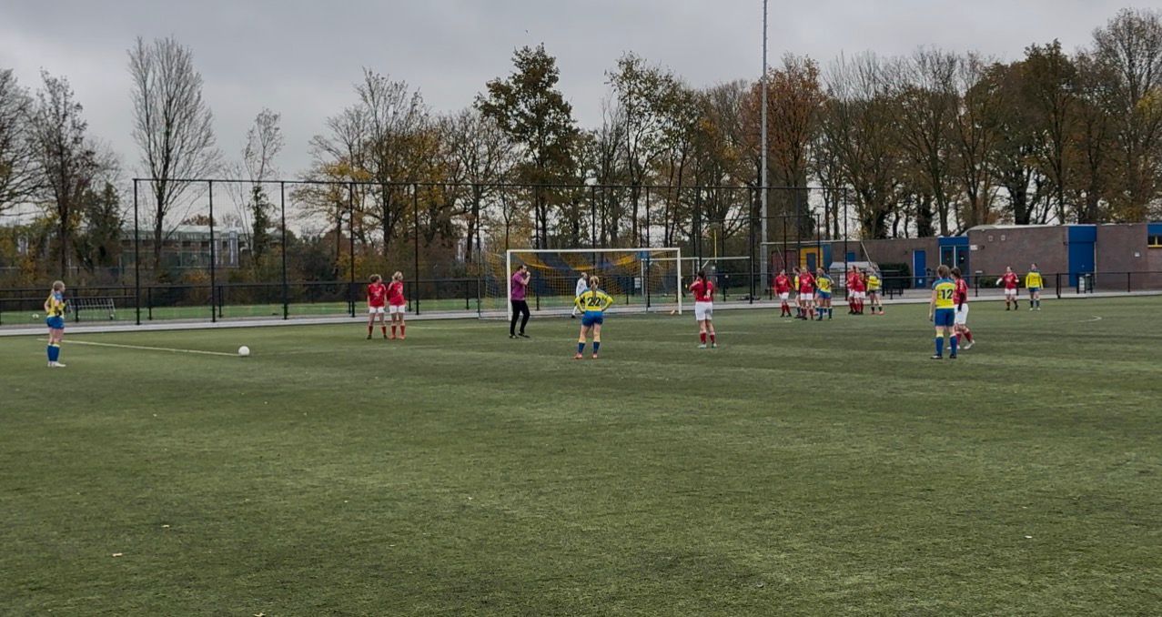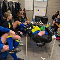 Iedereen keek elkaar aan alsof iemand de bruidstaart van een bruiloft had laten vallen. Gelukkig dook ‘ie op en konden de meiden toch in het herkenbare geel/blauw het veld op. Crisis afgewend.