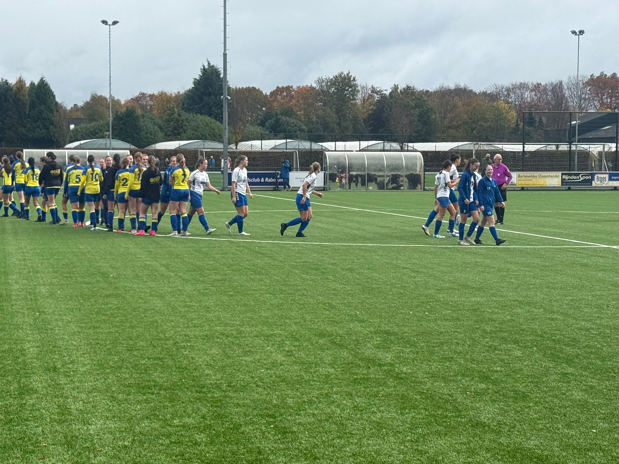 Na de rust kwamen we er beter in en werden we gevaarlijker zonder weer echt grote kansen. Een aantal goede corners waren ons beste wapenfeit. Een hoekschop van Dorinka werd door Anouk net aan de verkeerde kant van de verre paal gekopt. Hierna nog een voorzet die net voor langs ging. Ondertussen vielen alle beslissingen niet in ons voordeel zeg maar. Onze meiden mochten niks zeggen en kregen een waarschuwing dat ze een gele kaart zouden krijgen. Foutieve ingooien mochten door. Ingooien werden de andere kant opgegeven en voor hands werd al helemaal niet gefloten. Een duidelijke corner voor ons werd niet gegeven en de daaropvolgende aanval ging een schot van de thuisploeg ruim naast en waar iedereen een doeltrap zag werd 't toch een hoekschop waaruit de 2-0 viel en in blessuretijd viel ook nog de 3-0.